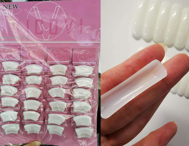 Professional White Halfmoon Long Nail Tips. Each packet has 20 tips inside.